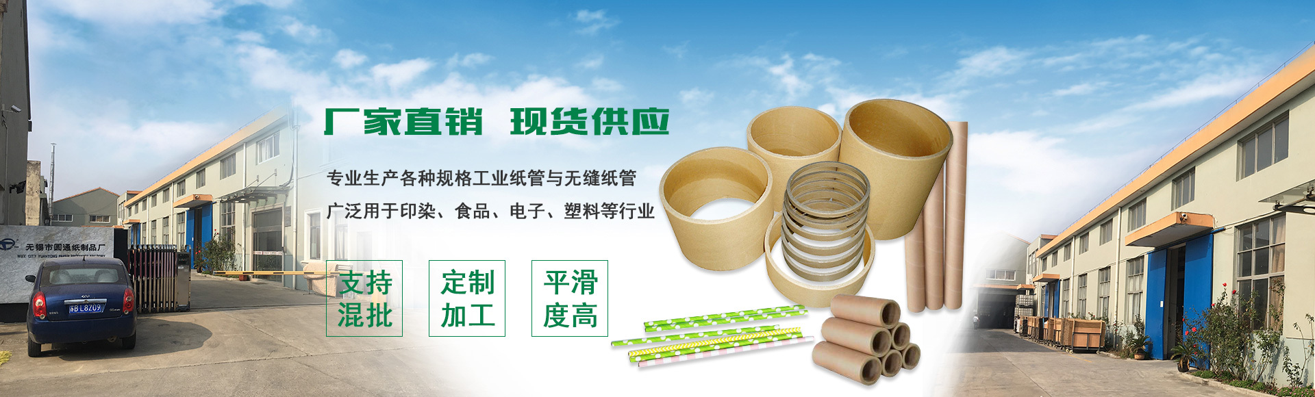 • 無錫市圓通紙制品廠位于無錫新區,一家專業生產各種規格工業紙管、無縫紙管、電池紙套、紙吸管的紙管廠家